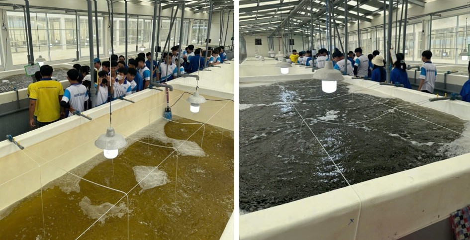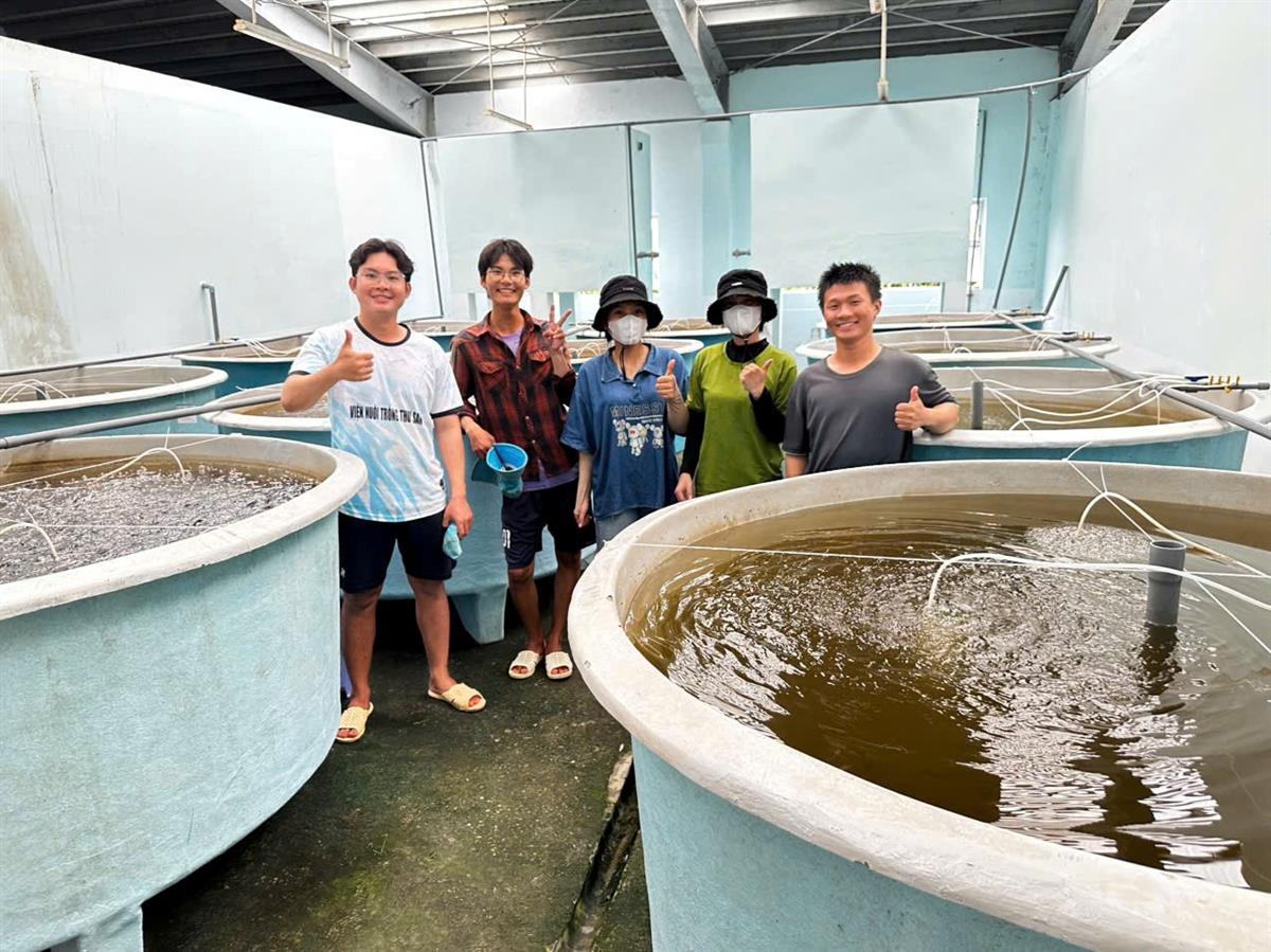 Ngay từ năm đầu, sinh viên sẽ được tham gia các chuyến đi thực tế, tham quan và học tập ngoại khóa tại các cơ sở sản xuất giống và nuôi trồng thủy sản. Tại đây, các em có thể trực tiếp quan sát quy mô của các hệ thống sản xuất như hệ thống bể ương, hệ thống ao nuôi, lồng bè, nhà màng công nghệ cao... Hơn thế, các em được quan sát quy trình kỹ thuật ương nuôi tôm, cá...; quy trình xử lý nước, cho ăn, chăm sóc quản lý theo từng giai đoạn, thậm chí là quá trình thu hoạch tôm, cá nuôi. Tiếp cận thực tế sớm không chỉ giúp các em thấy hứng thú hơn với việc học, mà còn mở ra góc nhìn rõ ràng về nghề nghiệp tương lai. Nhờ đó, sinh viên hiểu hơn về công việc mình sẽ làm, thấy được vai trò quan trọng của ngành thủy sản trong đời sống và phát triển kinh tế – xã hội, từ đó nuôi dưỡng đam mê và định hướng con đường đi phù hợp với bản thân.