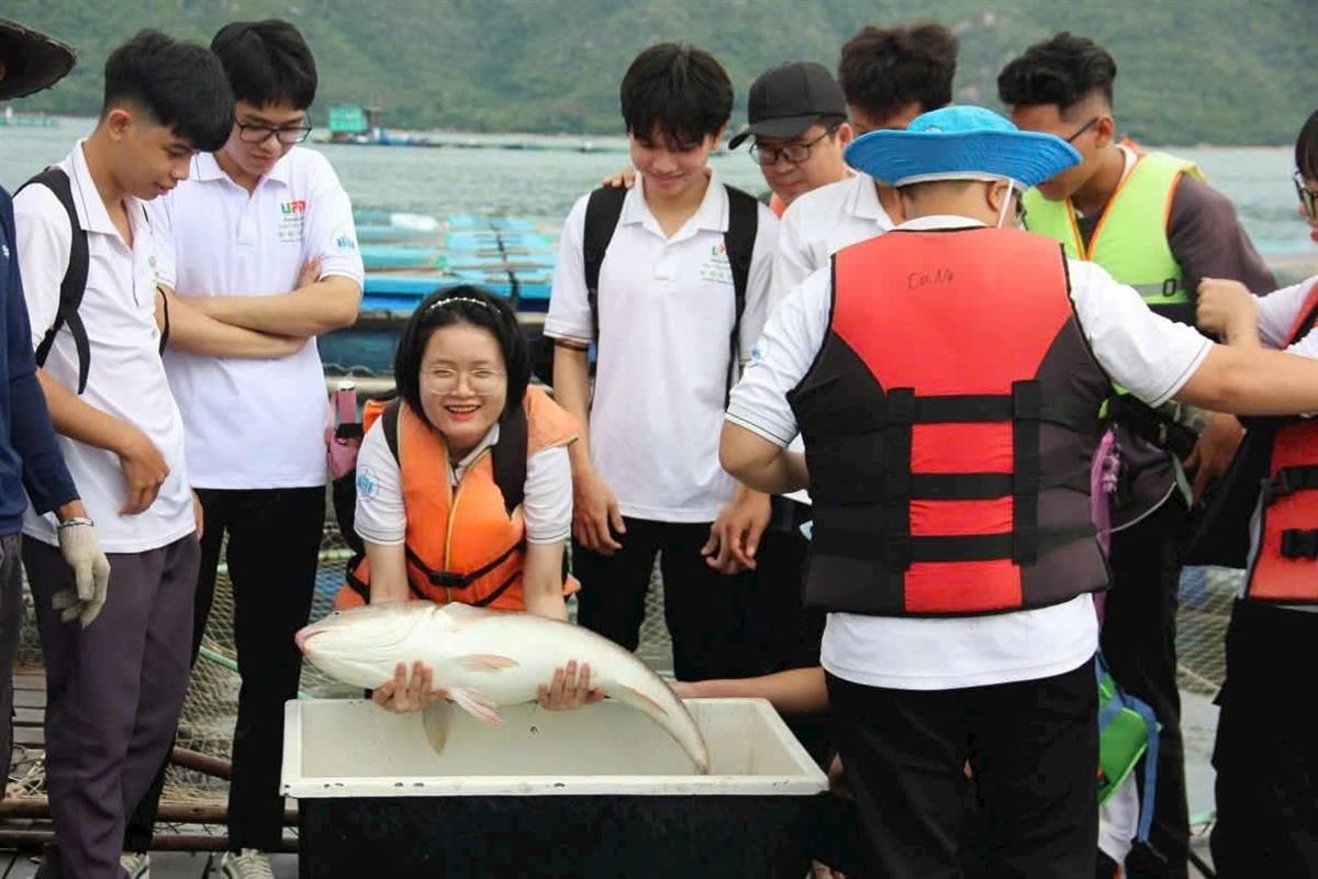 Sinh viên trải nghiệm thực tế tại bè nuôi cá biển
