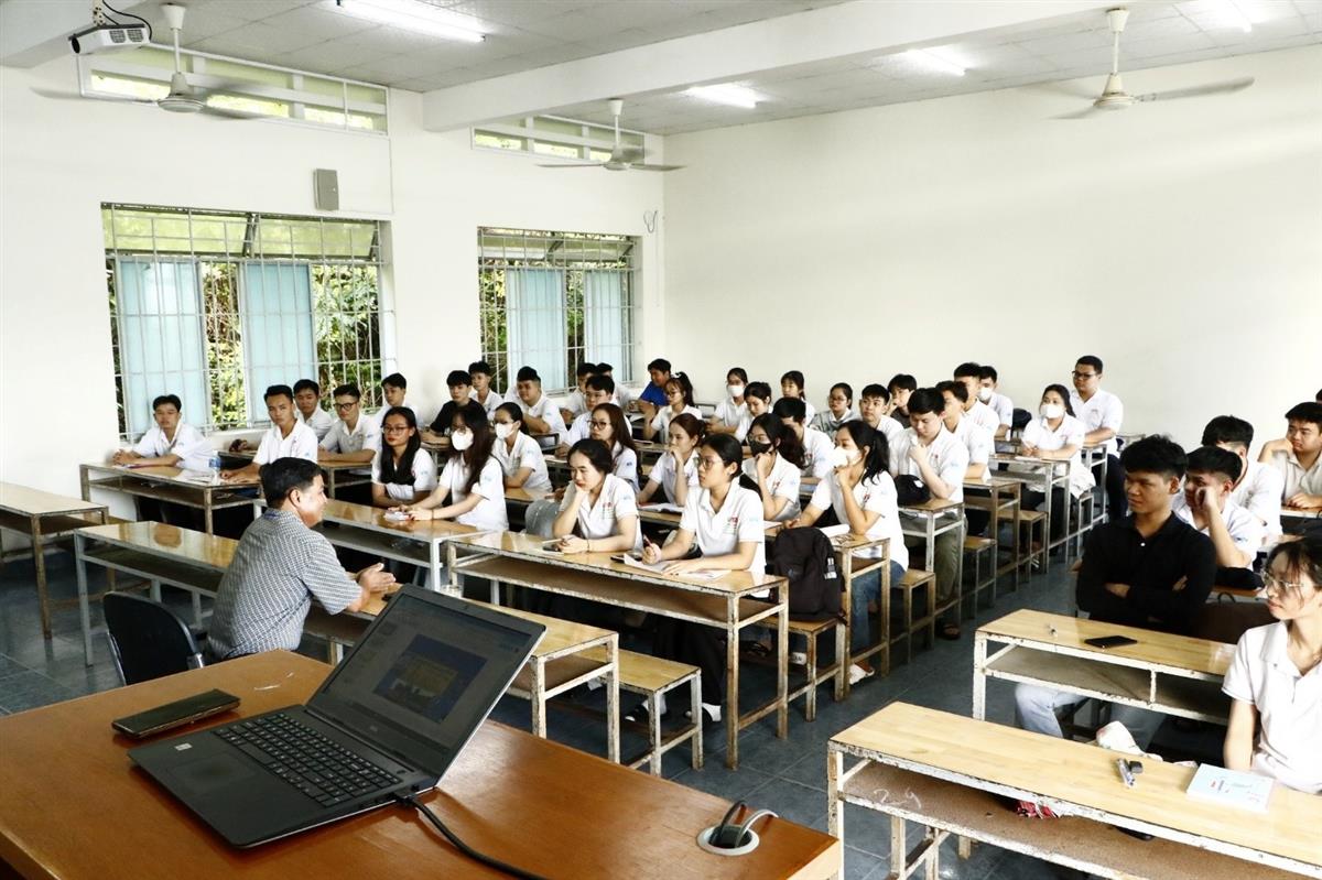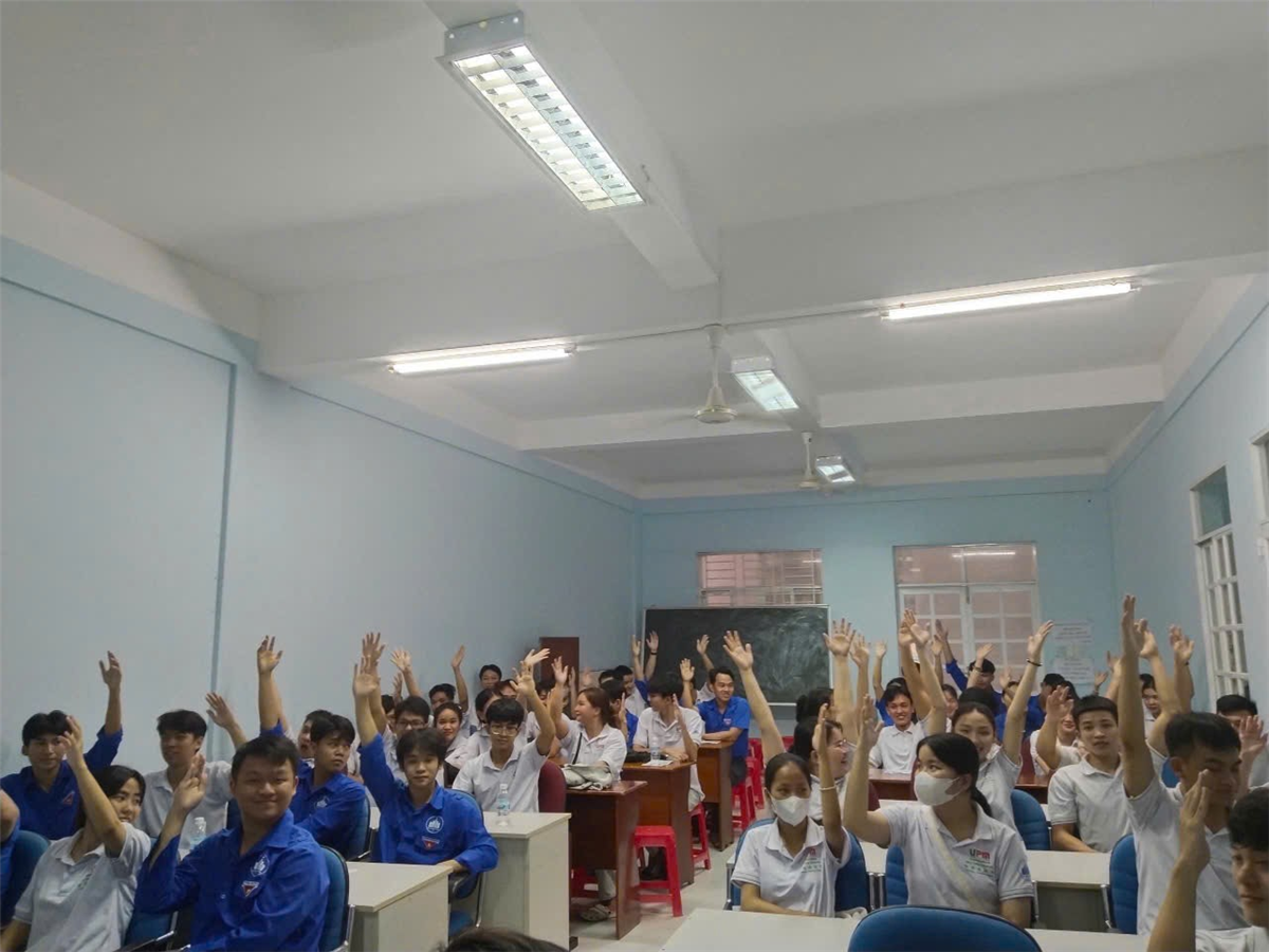 Sinh viên ngành NTTS trao đổi sôi nổi tại chương trình Hướng nghiệp cùng ThS. Đào Tấn Đạt - Cựu Sinh viên thành đạt - GĐ Ngân hàng Kiên Long, chi nhánh Vĩnh Hải (25/5/2025)