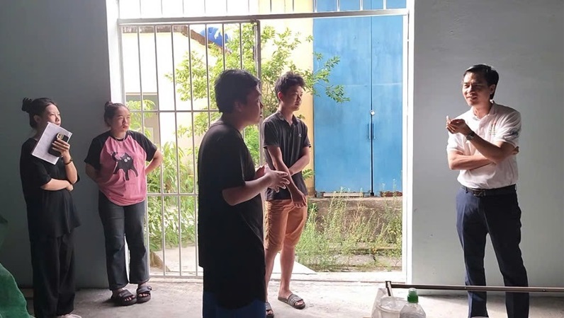 Thầy Vũ Trọng Đại hỏi thăm tình hình thực tập của sinh viên